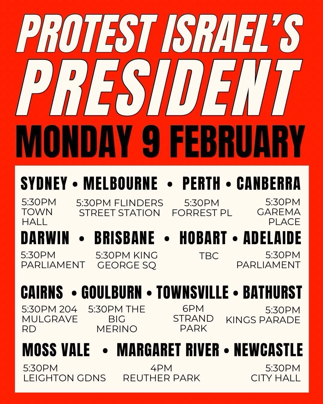 Israeli President Isaac Herzog is due to visit Australia, February 9–12, despite a growing coalition of human rights advocates, legal experts, anti-Zionist Jews and community groups calling on Prime Minister Anthony Albanese to cancel his invitation.